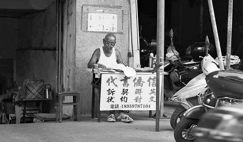 彼时,在留着胡子的代书老先生里,姜明典显得稚嫩,母亲便让他下乡开拓业务。背起装有纸笔和糙米的旧书包,骑上自行车,姜明典穿梭于晋江、石狮的大小村落,挨家挨户询问:“阿伯阿婶,今仔日有批要写无?”