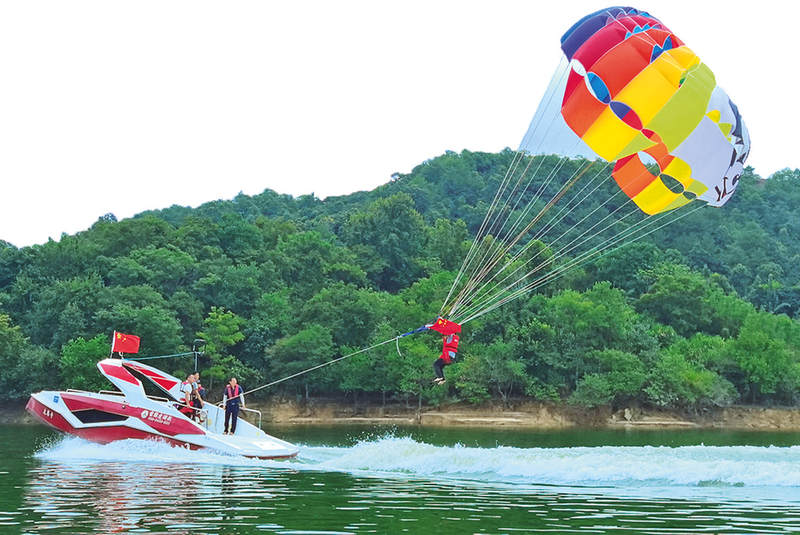 在这里,可以追求速度,乘漂移艇;也可以高空俯瞰,拖伞船翱翔;还可以乘画舫、游艇缓行,让身心融入湖光山色,感受生态馈赠的惬意。