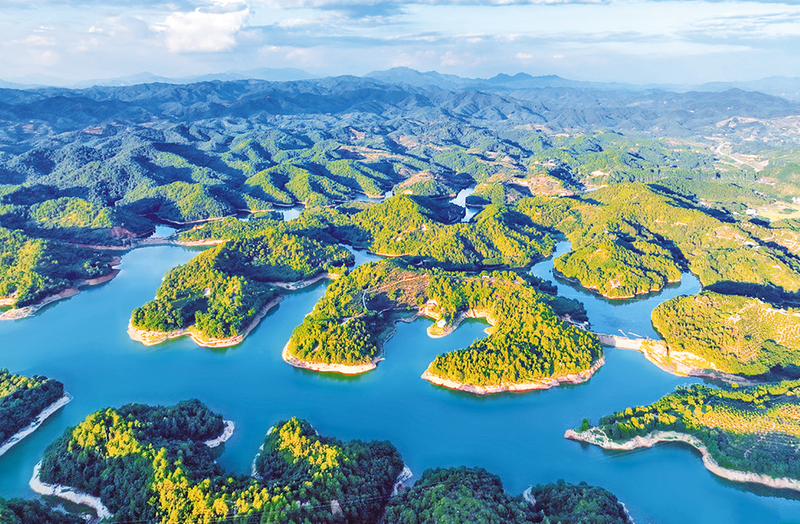 龙岩市永定区峰市镇、仙师镇境内的龙湖,是国家重点水利枢纽项目棉花滩水库蓄水形成的大型人工湖泊景区,因外形酷似腾空飞舞的巨龙而得名。