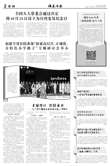 《福建侨报》是省委统战部主管,福建侨界唯一拥有国内统一连续出版物号、独具侨味特色的报纸。长期以来,《福建侨报》在各级各部门关心支持下,积极宣传报道统战侨务政策和法规,宣传报道福建经济社会发展成就,宣传报道港澳台同胞及海外侨胞等感人事迹、各级统战侨务部门工作经验等,“天涯海角福建人”“归侨故事”“旧事新说”“闽韵传情”等栏目先后被评为福建省报刊十大名栏目。2026年,《福建侨报》将迎来创刊70周年,报社将对标主流媒体系统性变革要求,聚焦统战领域主题宣传,服务打好新时代新“侨牌”。 (林璐)