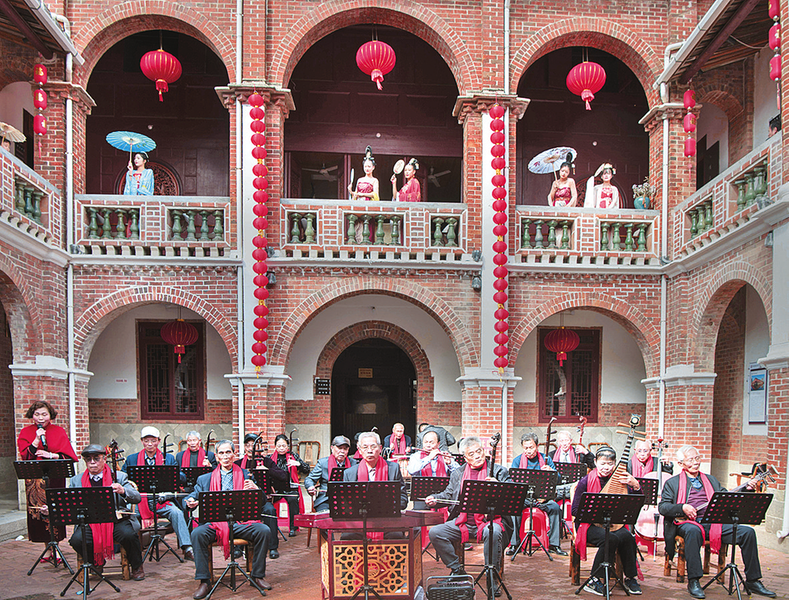 东方廿五坎的拱廊造型巧妙、引人入胜。古厝上依稀可见雕梁画栋,中式雀替缠上西洋卷草纹,是侨乡建筑融贯中西的生动注脚。