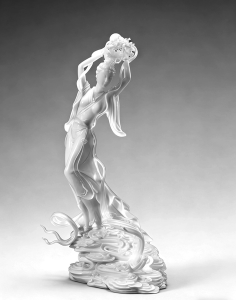 德化瓷以本地优质高岭土为原料,胎质细腻,可塑性极强。其成型主要有两种方式:一是直接手工塑造成型,二是借助模具进行注浆或拓印成型。坯体干燥后,根据需要进行施釉,再入窑经一千摄氏度以上高温烧制而成。宋早期的产品主要是青白瓷,随着技术的不断提高,逐渐发展为白釉瓷。明代白釉瓷瓷质如脂似玉,创造了独具一格的“象牙白”,被视为中国白瓷的代表。