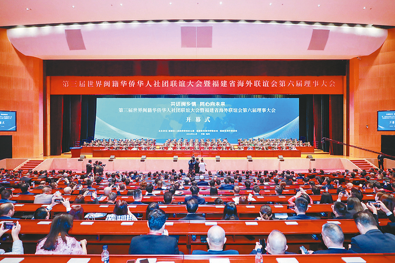 ▲ 2023年11月3日,第三届世界闽籍华侨华人社团联谊大会暨福建省海外联谊会第六届理事大会在福州开幕。(资料图片) 2021年3月,在“十四五”开局起步的关键时刻,习近平总书记到福建考察,明确提出“四个更大”重要要求,为新发展阶段新福建建设赋予新使命。