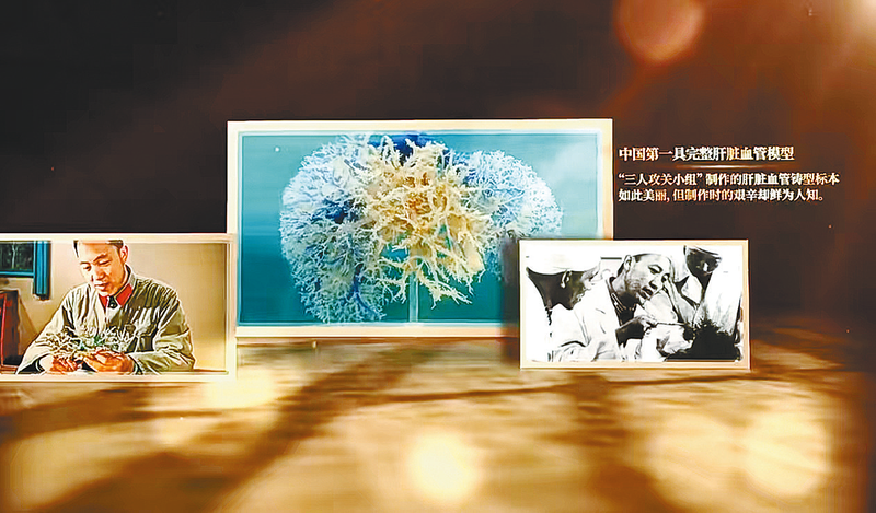 展馆内,一双“托起生命的手”雕塑格外引人瞩目,这正是吴孟超院士医者仁心的生动写照。凭借坚定信念与不懈探索,他突破重重技术壁垒:制成中国第一具完整肝脏血管模型,提出“五叶四段”解剖理论,成功闯过中肝叶手术禁区,为中国肝胆外科开辟出一条自主创新的发展道路。