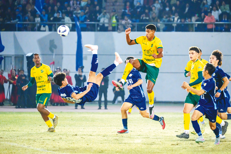 1月17日晚,莆田市体育中心田径场人声鼎沸,宝胜之夜·莆超邀请赛(中国莆田VS巴西雅乌)比赛在这里举行。作为首场莆超国际邀请赛,这场跨越大洋的绿茵对话以“让世界看见莆田”为主题,将百年桑巴足球与千年莆阳文化紧密相连,在竞技中传情,在交流互动中增进感情。