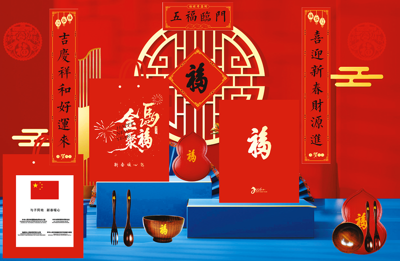 此次“新春暖心包”由国务院侨办会同中国侨联联合福建省侨办及驻外使领馆寄赠,一封新春家书、一份新春贺礼,向远在异乡的侨胞传递“家”的温暖与牵挂。今年的暖心包既体现福建特色,又承载中华传统文化的深厚底蕴。突出“春节”、“ 暖心”等元素,以“福”字为主题,“ 福”字既是代表福建、又表示中国传统“福”字的美好寓意,融入福建省“福”文化。礼包中有福盘(葫芦形状,寓意“福禄”)、福碗、福叉福勺,使用福建传统大漆工艺(属国家级非物质文化遗产),并铭上康熙“天下第一福”的“福”字,将五福之寓隐含其中,寄予侨胞们幸福安康、事业兴旺的美好祝愿。 (闽同心)