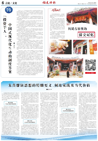 朱熹廉洁思想是涵盖“修身—为政—化俗”的体用贯通、环环相扣的体系,充分彰显了儒家“内圣外王”的修身治世之道。福建是朱熹生长、讲学、施政的核心区域,其廉洁思想在此地历经实践之淬炼,不仅留下了鲜活的历史印记,也为当今思考廉洁文化建设问题提供了超越时空的智慧。