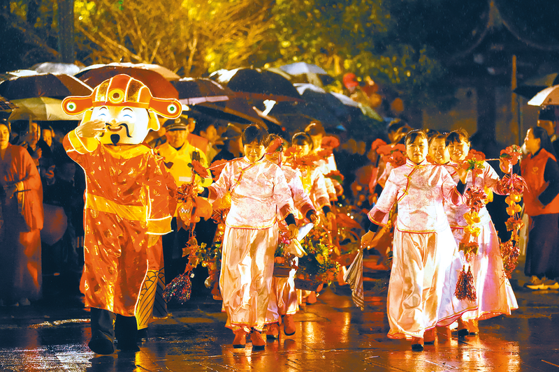 2月28日,宁德市屏南县双溪镇灯火璀璨,“双溪元宵灯会”火热开启。头排灯、香火龙、铁枝、鼓亭、高跷……踩街长队沿着古街老巷前行,人声鼎沸,热闹非凡,邀各地游客沉浸式感受闽东非遗的独特魅力。(陈伟杰 图/文)