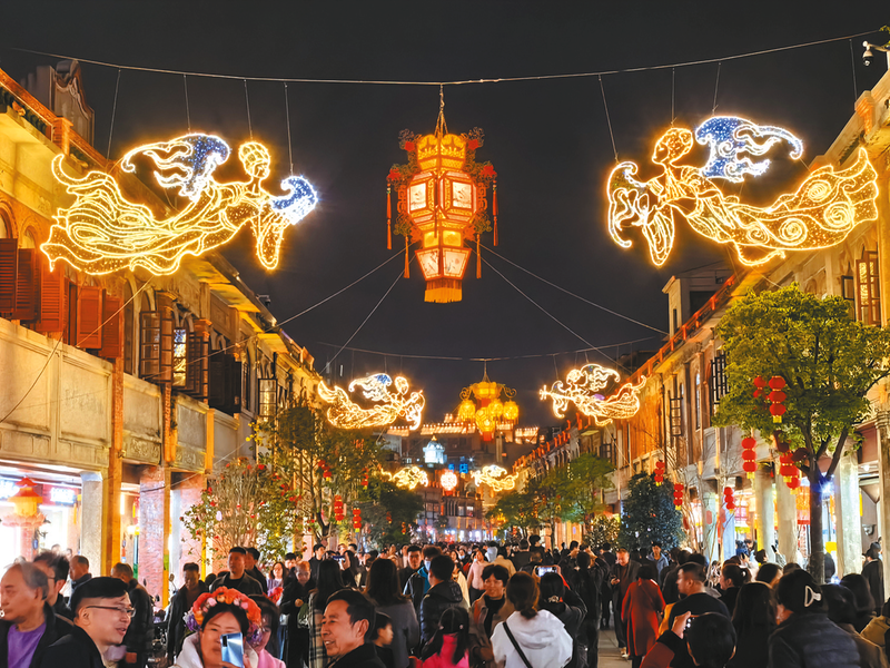 元宵节期间,泉州市以“骐骥贺刺桐·万灯闹新春”为主题,在全城设置15个花灯展区,灯火与红砖古厝交相辉映,传统与现代光影相得益彰,营造“人在灯下,灯在城中”的沉浸式景致,为市民游客呈现古早味十足、烟火气浓郁的文化盛宴。 (肖发兴 图/文)