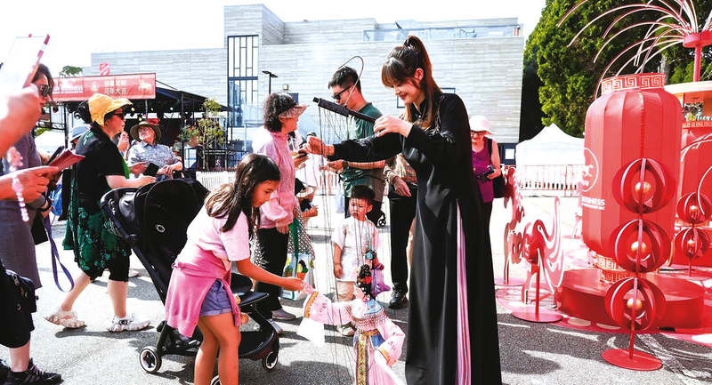 活动现场,泉州南音、提线木偶、高甲戏等非遗展演与舞龙舞狮、民俗市集相映成趣。小分队还化身“移动文化使者”,在埃索大厦、皇后桥广场等多个城市地标开展快闪互动。许多当地民众亲手体验木偶操控、佩戴簪花,在互动中直观感受泉州文化的魅力。