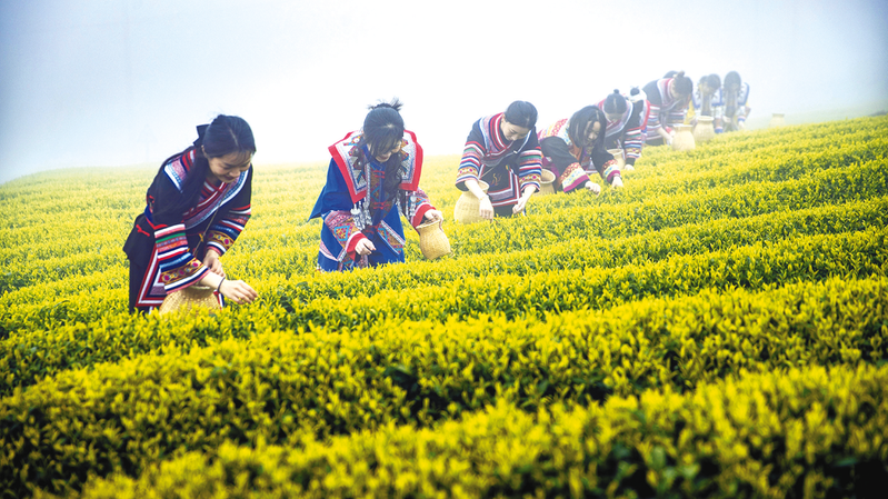3月19日,福州市连江县长龙茶山春茶正式开采。只见茶农穿行于茶垄间,娴熟采摘高山绿茶嫩芽。长龙镇地处炉峰山,高海拔、多雾气候孕育出品质上乘的高山茶。近年来,当地整合畲族文化资源,推动茶旅融合发展,让明前茶采摘成为当地一道独特的风景线。