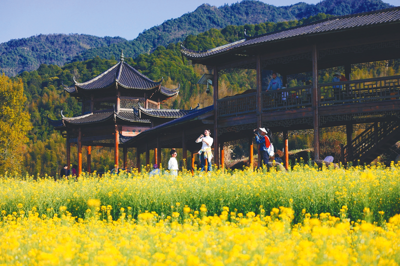 建宁坪上梯田之上,油菜花如金色海洋般翻涌起层层叠叠的花浪,随着梯田的起伏徐徐铺展,宛如大地精心绘制的春日画卷。清风拂过,花枝轻摇,馥郁芬芳四溢开来,金黄与翠绿交织成一片斑斓的田园诗画。各地游客纷至沓来,共赴这场与春天的浪漫之约。 (孙琳美 肖开涯/图)