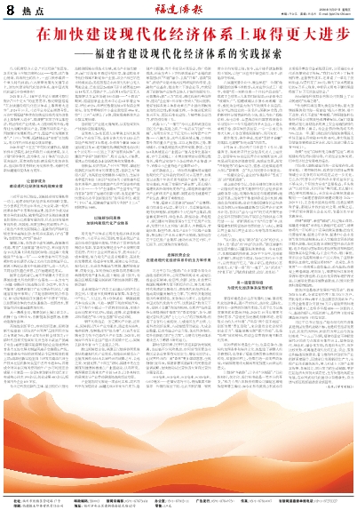 2021年3月,习近平总书记在福建考察时提出“四个更大”的重要要求,殷切期望福建“ 在加快建设现代化经济体系上取得更大进步”。2024年10月,习近平总书记在福建考察,再次叮嘱福建“继续在加快建设现代化经济体系上取得更大进步”,强调要“牢牢守住实体经济,巩固传统产业优势,大力推动转型升级,培育壮大战略性新兴产业,前瞻布局未来产业,因地制宜发展新质生产力,塑造产业发展新优势”。“十四五”时期,福建制造业“家底”更加殷实,现代化经济体系建设成效显著。